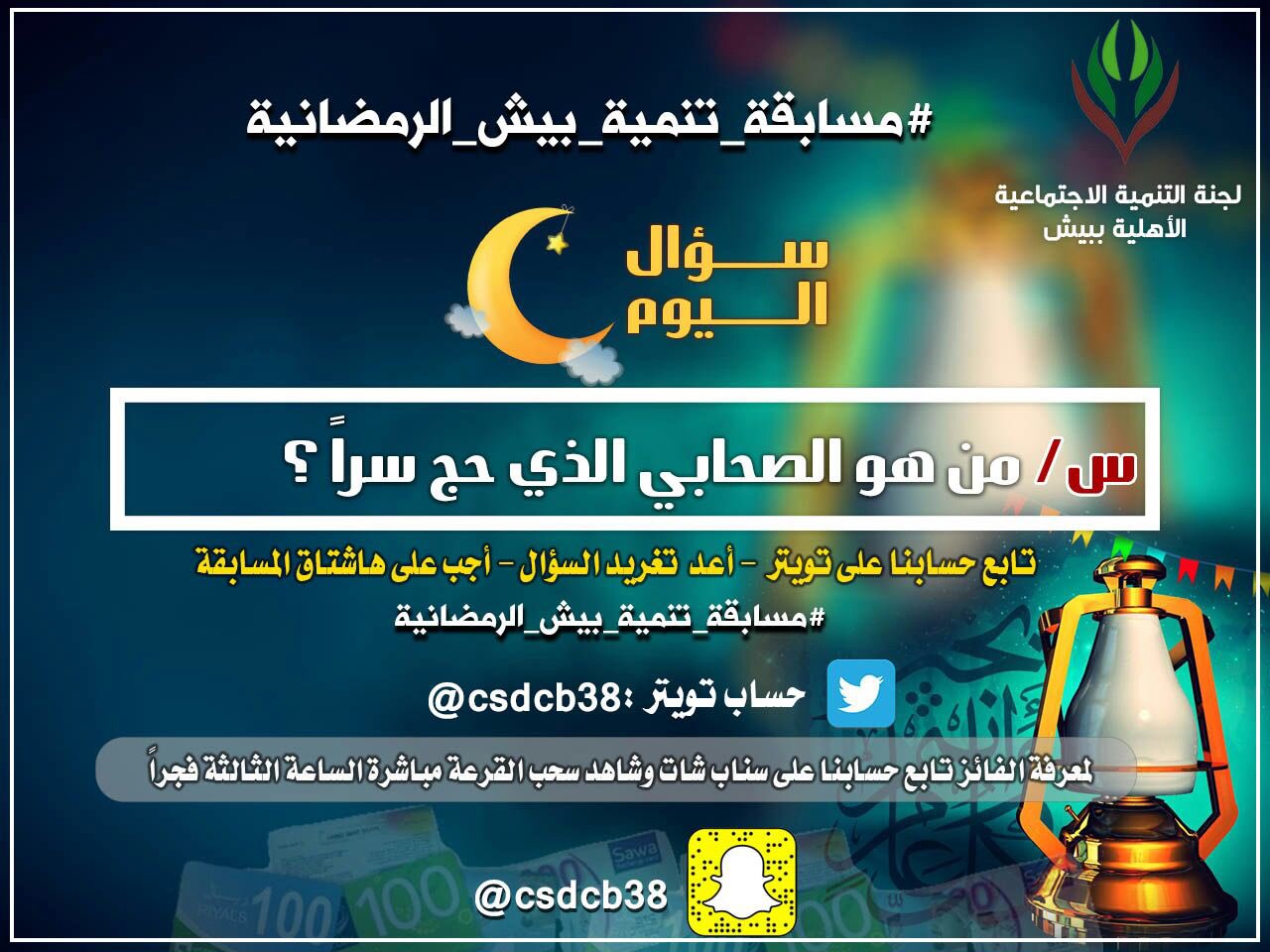 لجنة التنمية في بيش En Twitter سؤال الليلة من هو الصحابي الذي حج سرا مسابقة تنمية بيش الرمضانية بيش جازان