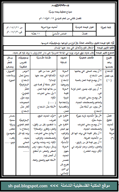 تحضير الوحدة الأولى والثانية في اللغة العربية للصف السادس الفصل الثاني المكتبة الفلسطينية الشاملة
