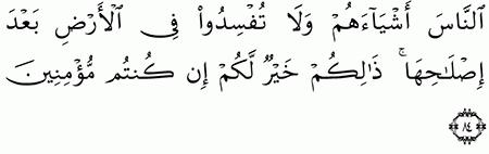 ولا تبخسوا الناس أشياءهم ولا تفسدوا في الأرض بعد إصلاحها