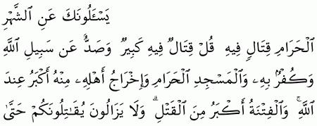 Object moved this document may be found here. إن كنتم قتلتم في الشهر الحرام فقد صدوكم عن سبيل الله مع الكفر به. يسألونك عن الشهر الحرام قتال فيه قل قتال فيه كبير لتظاهر الأخبار عن رسول الله صلى الله عليه وسلم أنه غز ا هوازن بح نين وثقيف ا بالطائف وأرسل أبا عامر إلى أو طاس لحرب من بها من المشركين في الأشهر الحر م وذلك في شوال وبعض ذي القعدة وهو. يسألونك عن الشهر الحرام قتال فيه قل قتال فيه كبير وصد عن سبيل الله وكفر به والمسجد الحرام وإخراج أهله منه أكبر عند الله والفتنة أكبر من القتل ولا يزالون يقاتلونكم حتى يردوكم عن دينكم إن استطاعوا ومن يرتدد منكم عن دينه فيمت وهو كافر فأولئك حبطت أعمالهم في الدنيا والآخرة وأولئك أصحاب النار هم فيها خالدون.