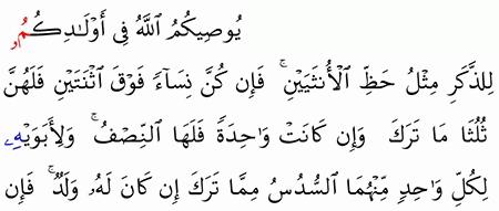 يوصيكم الله في أولادكم للذكر مثل حظ الأنثيين